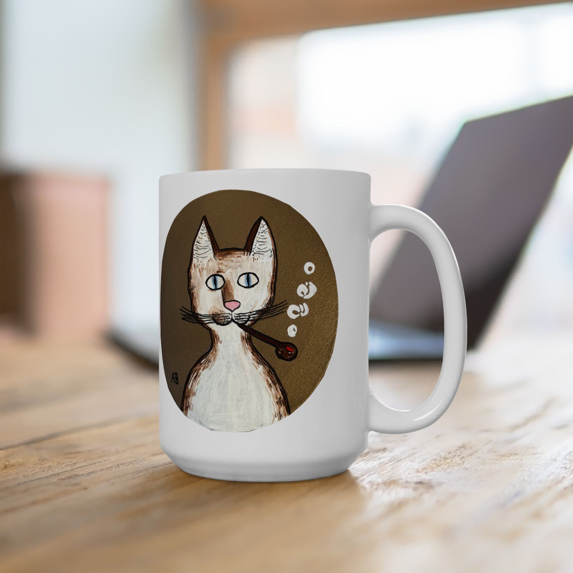 Easy way to spread the visual joy. Perfect for that extra boost of coffee or large amounts of hot cocoa on a rainy day, this ceramic mug comes in the jumbo 15 oz. size.