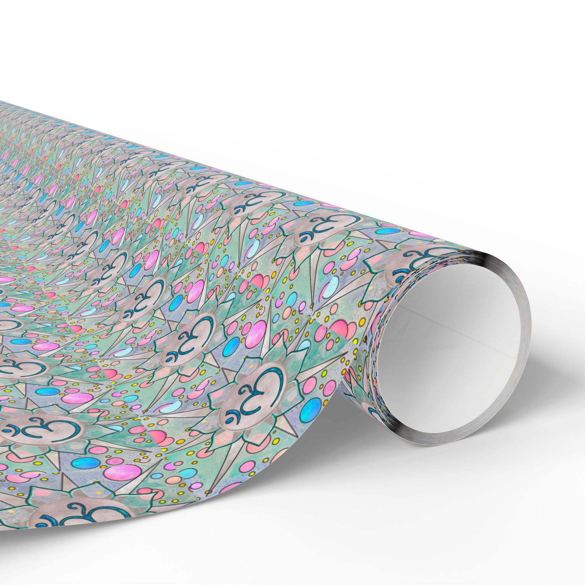 Silver & Turquoise Sunburst Om Wrapping Paper by Team Arjuna. Just in time for the holiday season. Available in 3 sizes with a glossy finish. Paper comes neatly rolled up.