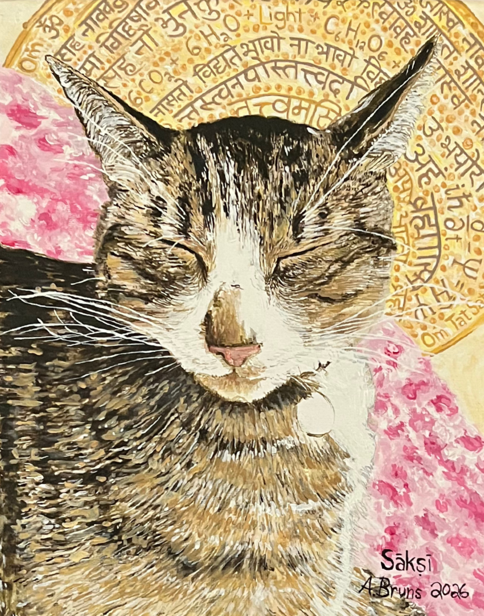 Portrait of the artist’s beloved cat. Titled Sākṣī Sanskrit for 'witness’ or ‘pure awareness.'